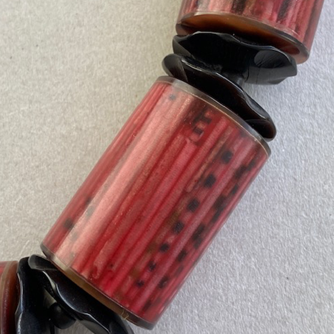 Schwarzes Leichtholz mit silbernen Elementen und Schließe